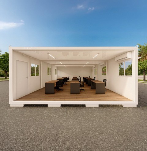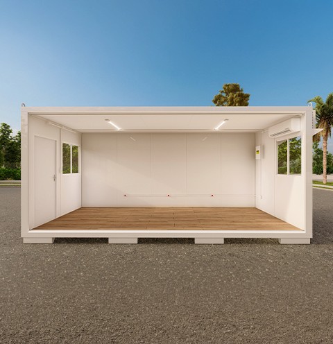 Módulo versátil com excelente aproveitamento de espaço, isolamento térmico, iluminação funcional e estrutura ideal para múltiplos usos.